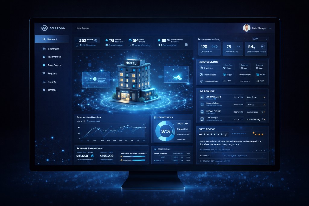 Misafir deneyimini tek noktadan yöneten, rezervasyondan oda servisine kadar operasyonları dijitalleştiren modern platform.